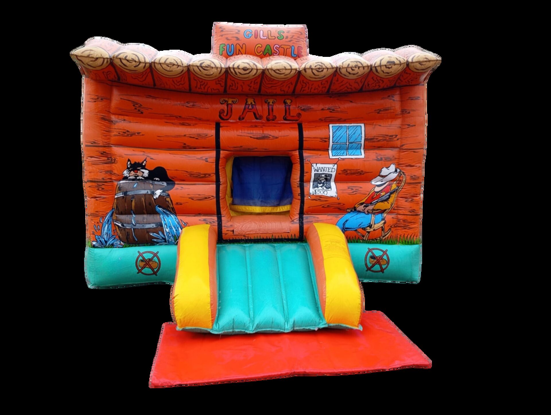 Le château bandit box peut se transformer en piscine à balles & dispose d’un mini-toboggan. Petit + : couvert, il protège du soleil !
