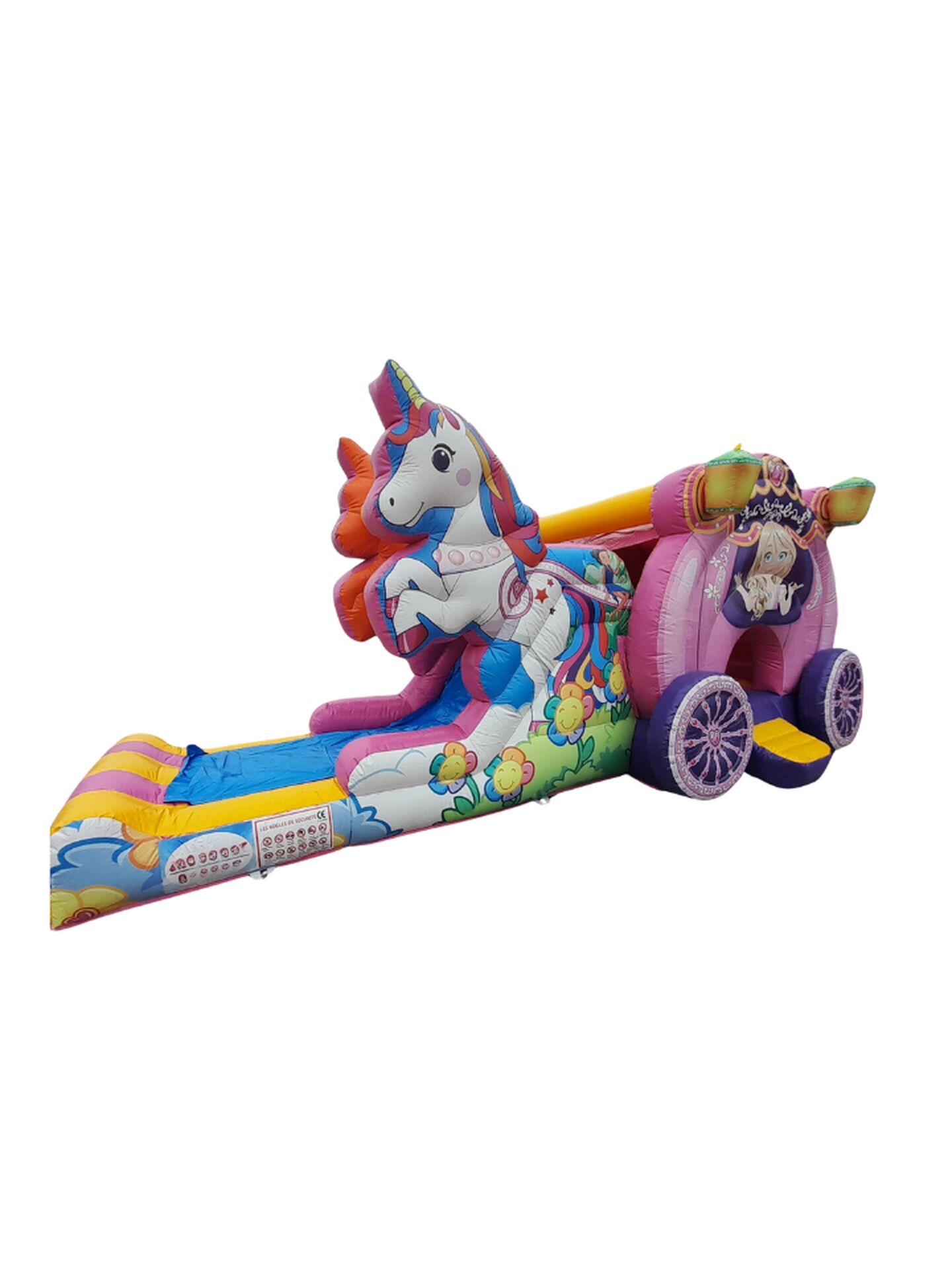 Le château combo carrosse dispose d’un toboggan & d’une petite zone de rebond. Petit + : il dispose d’un espace à la sortie du toboggan pour plus de sécurité !