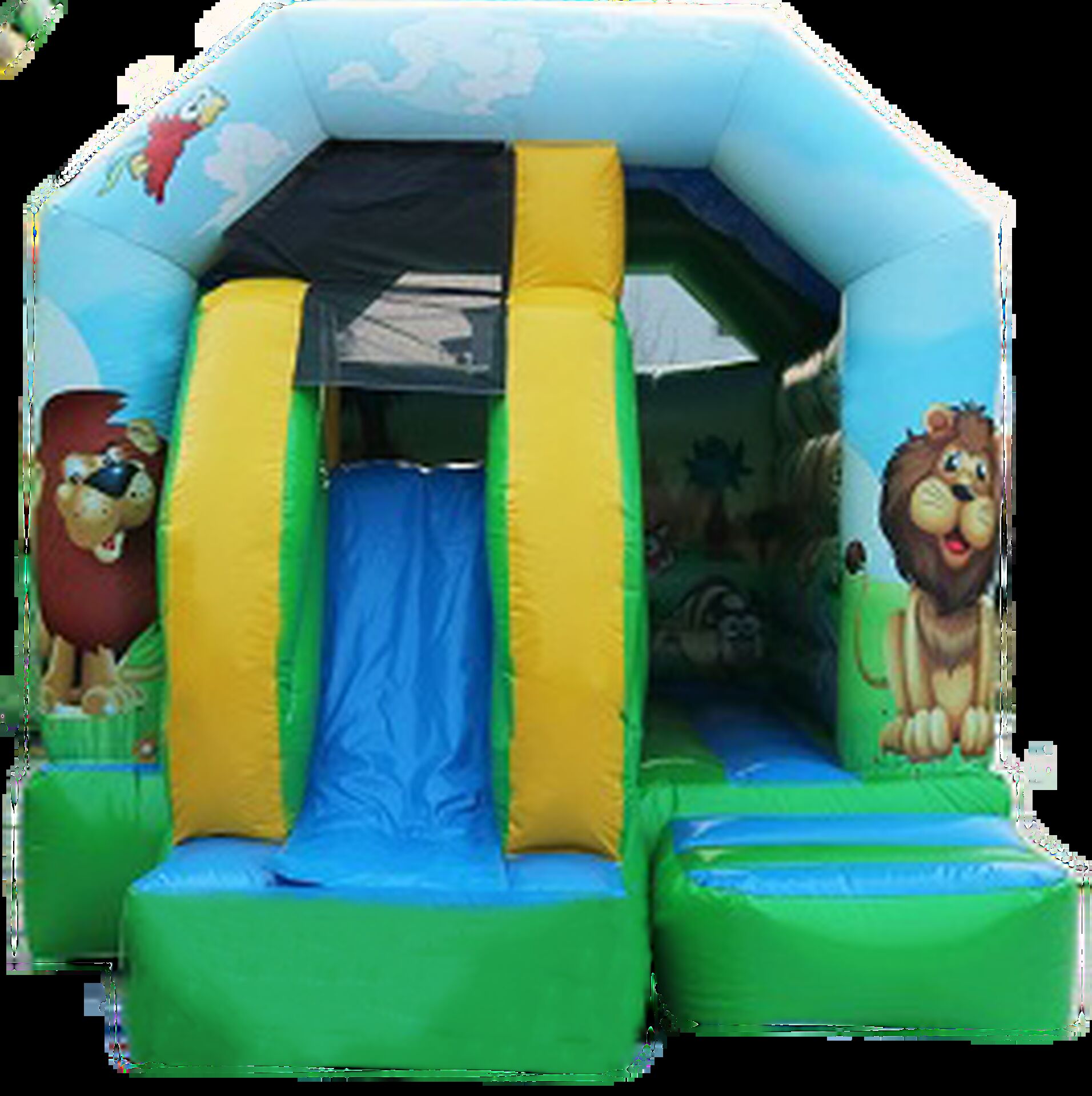 Le château combo jungle est idéal lorsque l’on manque de place pour une grande structure. Petits + : il dispose d’un toboggan & est couvert pour protéger du soleil !