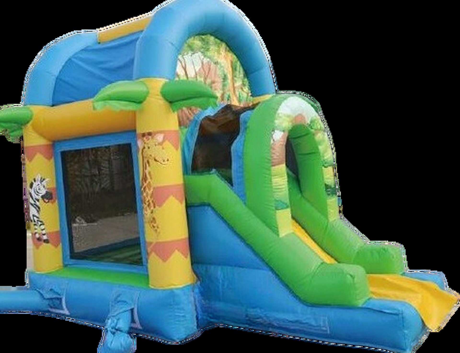 Le château combo savane est idéal lorsque l’on manque de place pour une grande structure. Petits + : il dispose d’un toboggan, d’une zone de rebond & est couvert pour protéger du soleil !